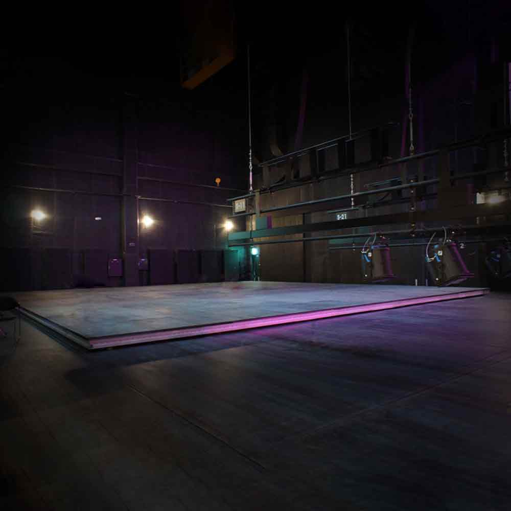 The stage wagon consists of three wagons of 5 x 15 m each. These can either be used together as one wagon or individually. Each wagon can carry a load of 10 tonnes. If the theatre uses the wagon in combination, the integrated turntable can be used as an option. This has a diameter of 11 m.